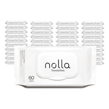 Nolla Flushable Wipes Bulk Pack – 100% Plant-Based and Biodegradable – Soft, Unscented + Soothing Aloe and Vitamin E – For Adults and Kids 2,400 Count (40 Packs of 60)