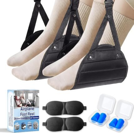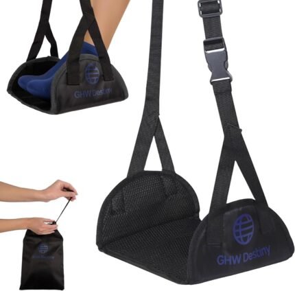 Airplane Footrest Hammock for Travel – Memory Foam Leg Rest for Plane & Office, Adjustable Height, Compact & Portable, Travel Essentials for Long Flights & Comfort Relief