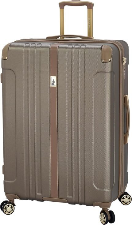 Price: (as of – Details) London Fog Northbridge 24″ Expandable Hardside Spinner MidnightDurable lightweight ABS hardside construction with faux leather