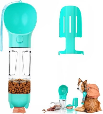 Dog Water Bottle 4 in 1 – Portable Travel Pet Water Dispenser with Bowl, Food Container, Poop Bag Holder & Waste Shovel – Bottle for Walking, Hiking & Outdoor Adventures, BPA-Free