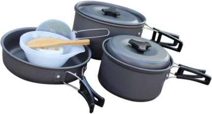 Bulin 13Pcs Camping Cookware Mess Kit, Nonstick Backpacking Cooking Set, Outdoor Cook Gear for Family Hiking, Picnic Lightweight Cookware Sets(Kettle, Pots, Frying Pan, BPA-Free Bowls, Plates, Spoon)
