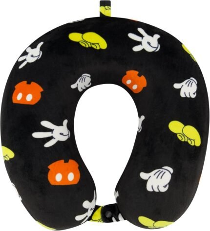 FUL Disney Mickey Mouse Neck Pillow, All Over Print Memory Foam Travel Accessories for Airplane, Car, and Office, Comfortable and Breathable, Black