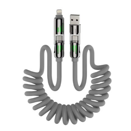 4-in-1 Coiled Universal USB Charging Cable -MAX 240W Fast Charging/Charger Cord with Multi USB Port for iPhone 16/15 14 13 iPad Samsung Galaxy MacBook iPad Tablets and More (Grey, 6Ft)