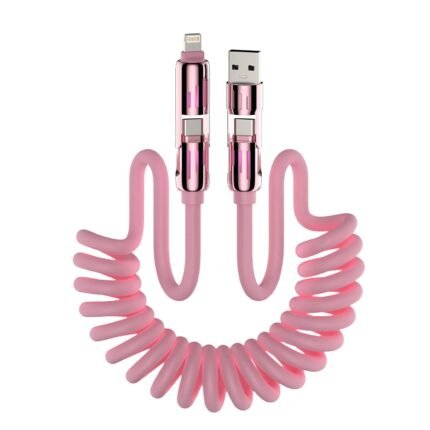 4-in-1 Coiled Universal USB Charging Cable -MAX 240W Fast Charging/Charger Cord with Multi USB Port for iPhone 16/15 14 13 iPad Samsung Galaxy MacBook iPad Tablets and More (Pink, 5.6Ft)