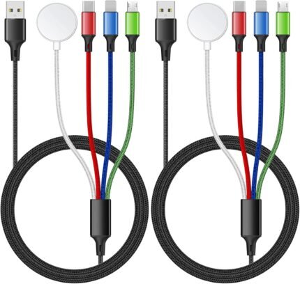 2Pack 4 in 1 iWatch & iPhone Charger for Travel, Multi Charging Cable for Apple Watch Charger Wireless USB C Micro Compatible with iWatch Ultra/SE/10/9/8/7/6/5/4/3/iPhone 16/15/14 Galaxy Android(4FT)