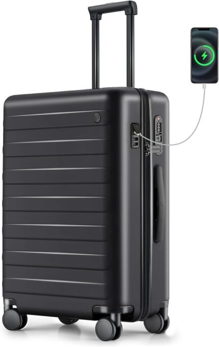 Carry on Luggage 22x14x9in Airline Approved with USB Port, 20 Inch Hardshell Spinner Hardside Suitcase with Wheels, TSA Lock for 3-5 Days Travel Quick Getaway Business, 38L, Pirate Black