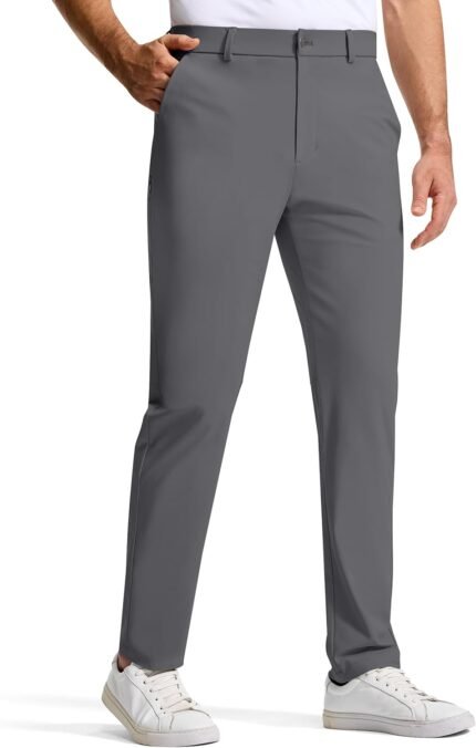 Mens Golf Dress Pants 31″ with 5 Pockets Stretch Slim Fit Lightweight Quick Dry Chino Trousers for Work Casual Travel