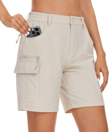 MAGCOMSEN Women’s 7″ Hiking Golf Shorts 6 Pockets Lightweight Quick Dry Outdoor Casual Cargo Shorts Water Resistant