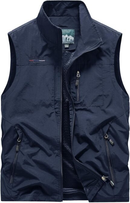 Lightweight Outdoor Vest Jacket for Men, Windbreaker for Golf, Safari, Travel, Fishing, Hiking, Gray