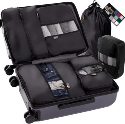 GORILLA GRIP 6 Set Packing Cubes, Travel Essentials for Suitcase, Mesh Organizer Bags for Clothes Toiletries Shoes and Laundry, Luggage and Carry On Airplane Accessories, Traveling Must Haves Black