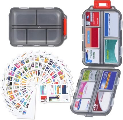 Large Pill Organizer with 189 Labels, 10 Compartments Travel Medicine Kit Travel Medicine Organizer Pocket Pill Case Travel Pill Box Travel Pill Organizer for Purse Vacation Essentials (Gray, 1 Pack)