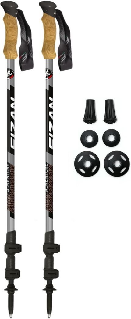 Fizan Adventure Trekking Poles – Ultralight, Backpacking, Thru Hiking Poles, Adjustable, Collapsible, Customized Fit, Cork Grips, Aluminum Walking Sticks