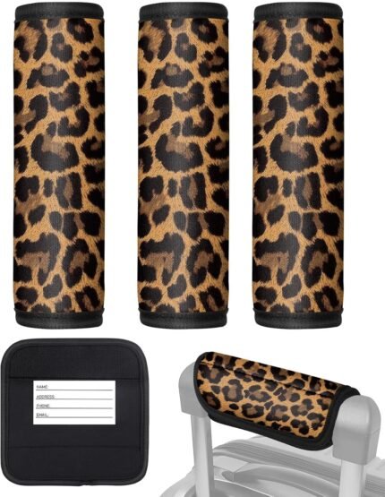 Slohif Luggage Handle Wrap 3Pcs Suitcase Identifier – Bag Strap Cover For Bogg Travel Accessories Easy Identification Bright Marker Sleeve Grips Comfort Neoprene Concealed Tag For Airport Leopard