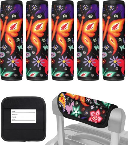 Slohif Luggage Handle Wrap 5Pcs Suitcase Identifier – Bag Strap Cover for Bogg Travel Accessories Easy Identification Bright Marker Sleeve Grips Comfort Neoprene Concealed Tag for Airport Butterfly