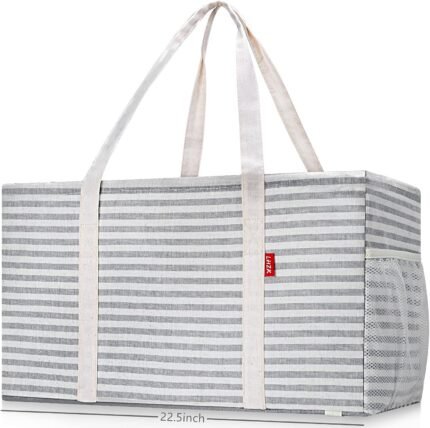 LHZK Standing Extra Large Utility Tote Bag with Metal Wire Frame and the Sides Rinforced, Extra Large Tote Bag with Handle, Reusable Grocery Bags Foldable, Beach Bag, Car Tote (Gray)