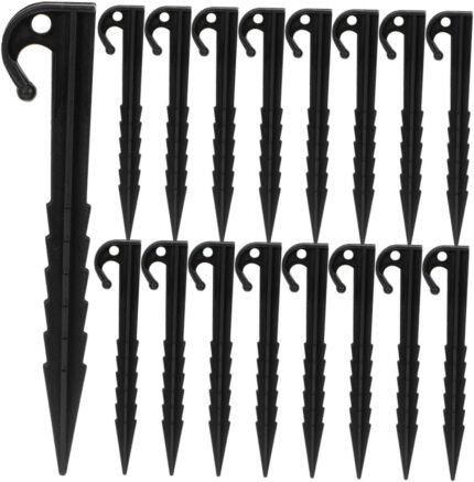 Price: (as of – Details) Package Include Tent Stakes Features -Material:Plastic plastic ground pegs -Color:Black tent stake -Size:14.50X3.00X1.20cm/5.70X1.18X0.47in professional stakes