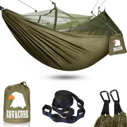 COVACURE Camping Hammock with Net – Lightweight Double Hammock 2 * 10ft Straps, Portable Hammocks, Camping Accessories for Outdoor, Hiking, Camping, Backpacking, Travel, Beach