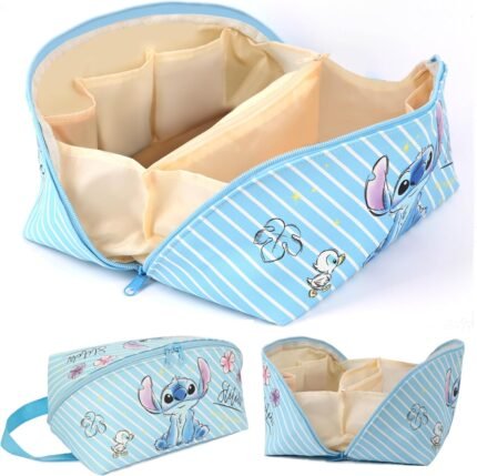 Stich Travel Makeup Bag,Large Capacity Cosmetic Bags for Women,Foldable Waterproof Portable Pouch Open Flat Toiletry Bag Make up Organizer with Divider and Handle,Best Gift for Women (Blue)