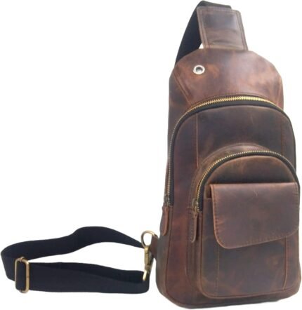 The Tannery Handmade Buffalo Leather Travel Hiking Crossbody Chest Sling Multipurpose Shoulder Strap Backpack Bag for Men and Womens (Dark Brown, Large)