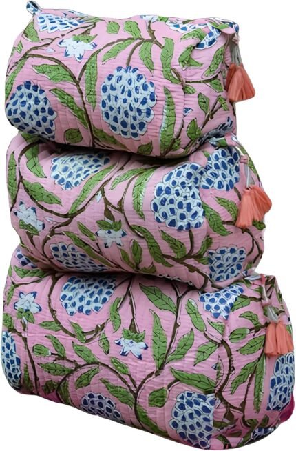 Price: (as of – Details) This Hand Printed Beautiful Cotton Toiletry Bag has decorative vertical stitching detail at bag exterior