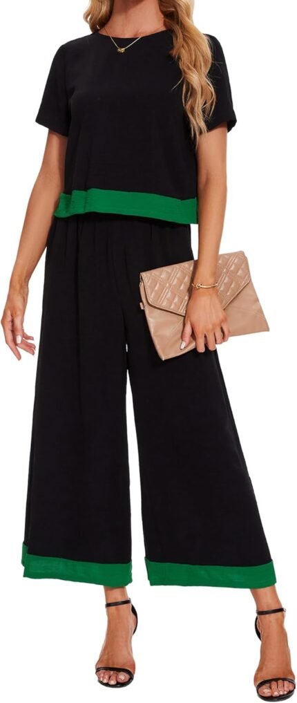 HANERDUN 2 Piece Outfits Short Sleeve Top Wide Leg Pants Casual Lounge Sets Trendy Lounge Clothes Sets
