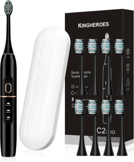 Electric Toothbrush Set, Comes with 8 Brush Heads & Travel Case,4 Modes with 2 Minutes Built in Smart Timer, One Charge for 60 Days, 42000 VPM Motor (Black)