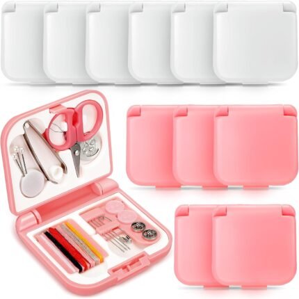 Yuxung 12 Pieces Travel Sewing Kit Emergency Mini Sewing Kit Travel Repair Kit in Bulk with Sewing Threads Scissors Needles for Wedding Gift Traveler Hotel Charity Homeless (Pink, White)