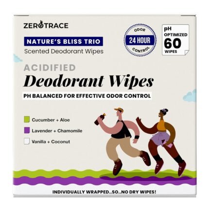 Zero Trace Travel Deodorant Wipes – 60 Count- 24 Hour Odor Control – Aluminum Free Hypoallergenic Mini Deodorant Wipes For Women and Men – Individually Wrapped Underarm & Body Wipes- Nature Bliss Trio