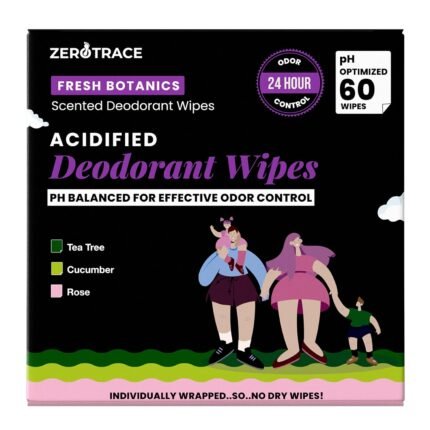Zero Trace Travel Deodorant Wipes – 60 Count- 24 Hour Odor Control – Aluminum Free Hypoallergenic Mini Deodorant Wipes For Women and Men – Individually Wrapped Underarm & Body Wipes- Fresh Botanics