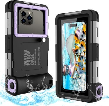 Underwater Diving Phone Case for Snorkeling,Professional 50FT/15M Waterproof for iPhone 16/15/14/13/12/11/XR/XS/X Pro Max Samsung Galaxy S24 Universal Photo&Video Scuba Dive Housing Case-Purple Black