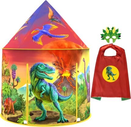ImpiriLux Dinosaur Kids Play Tent with Dino Mask & Cape Costume | Pop Up Fort for Imaginative Games and Gifts | Foldable Playhouse with Storage Bag