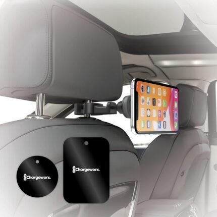 Magnetic Back Seat Mount for iPhone, Road Trip Essentials Adjustable Headrest Phone Holder for Car, Quick Install, Magnetic Phone Holder