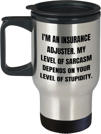 Insurance Adjuster Gifts from Family, Friends, Coworkers – Funny Travel Mug I’m An Insurance Adjuster. My Level Of Sarcasm Depends On Your Level Of Stupidity., Birthday Unique Gifts