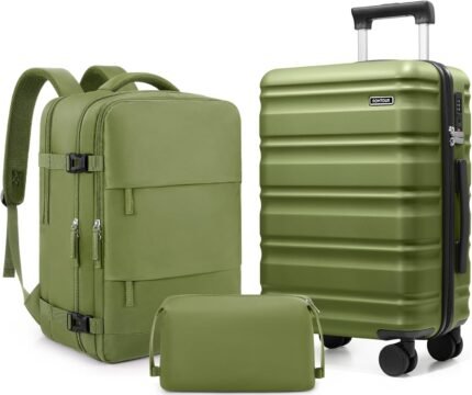 Suitcase Set 3 Piece, 20 IN Carry On Luggage with PC Hard Shell, TSA Lock Spinner Wheels Extension Handle Suitcase Set, Luggage Set With Fully Lined Interior