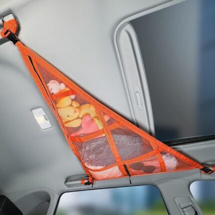 Kaskawise 3 Handles Car Ceiling Cargo Net for Inside Car Roof,Interior Mesh Storage,Truck SUV Travel Long Road Trip Camping Interior Accessories 35.4″x25.6″,Orange