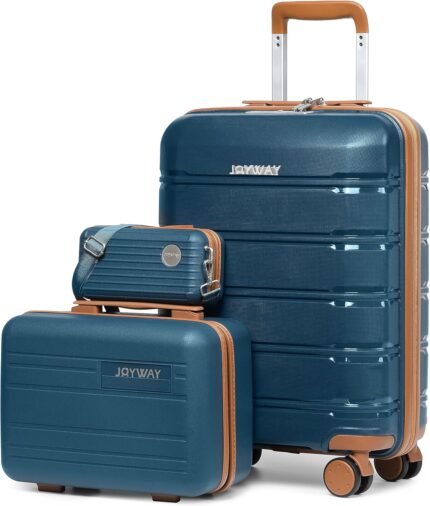 Joyway Luggage Carry On 20inch Lightweight Polypropylene Carrying Case with TSA Lock, Rigid Suitcases Sets with Swivel Wheels,14inch Cosmetic Bag and 7inch Toiletry Dark Blue