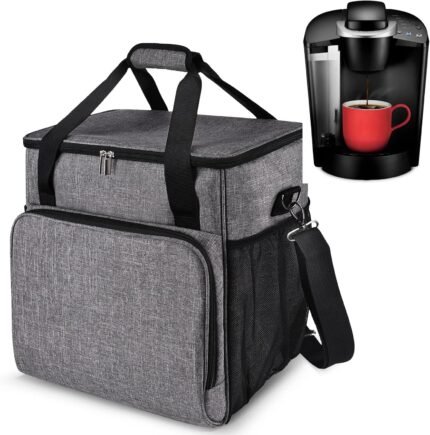 BAGLHER Coffee Maker Travel Bag Compatible with Keurig K-Classic、Keurig K-Elite、Keurig K-Compact or Other Accessories, Portable Coffee Maker Case with Shoulder Strap for Travel, Grey
