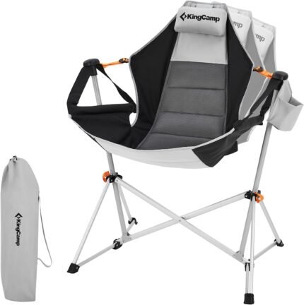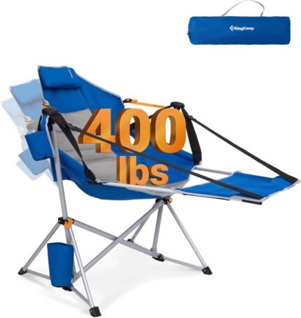 KingCamp Camping Chairs, Oversized Hammock Chairs, Folding Rocking Chairs, Aluminum Adjustable Back Swing Chairs, Chair with Removable Footrest Pillow Cup Holder for Outdoor Beach Lawn