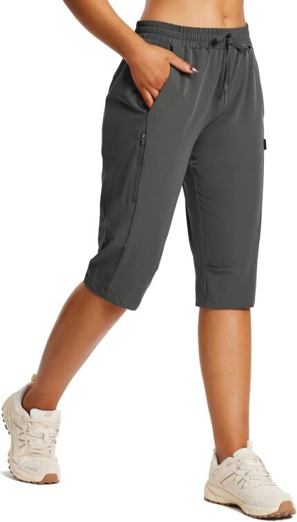 BALEAF Women’s 15″ Long Shorts Below The Knee Capri Hiking Cargo Shorts Lightweight Quick Dry Elastic Waist for Casual