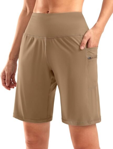 baleaf Women’s Bermuda Long Shorts 9″ Knee Length Athletic Running Shorts with Zip Pockets Stretch Loose Summer UPF 50+