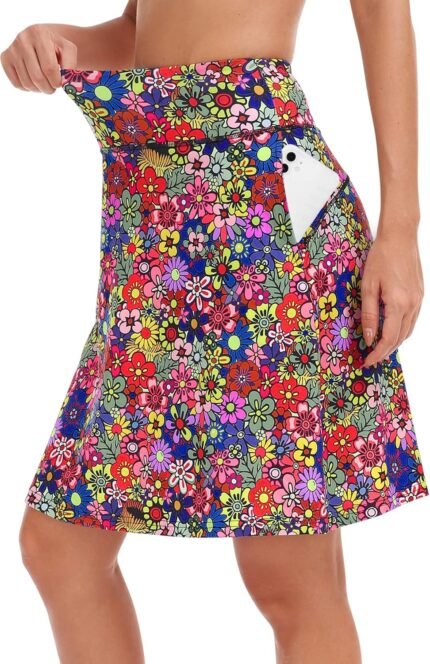 KORALHY 20″ Knee Length Skorts Skirts for Women, High Waisted Tennis Athletic Skirt with Zipper Pocket