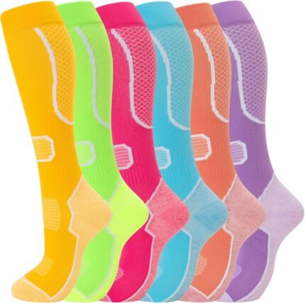 Price: (as of – Details) Product Description 6 Pairs Compression Socks for Women & Men Graduated Support Knee High Socks