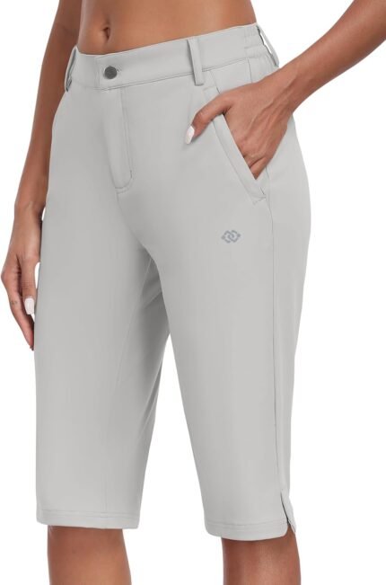 MoFiz Womens 15″ Hiking Long Shorts Below Knee Length Capri Cargo Shorts Lightweight Quick Dry Bermuda Shorts