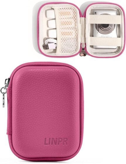Digital Camera Case for CAMKORY, KODAK PIXPRO FZ45/FZ55, Canon IXUS 285 HS, Lecran, Small Travel Compact Camera Pouch with Mesh Pocket for Accessories SD Card (Rose Pink)