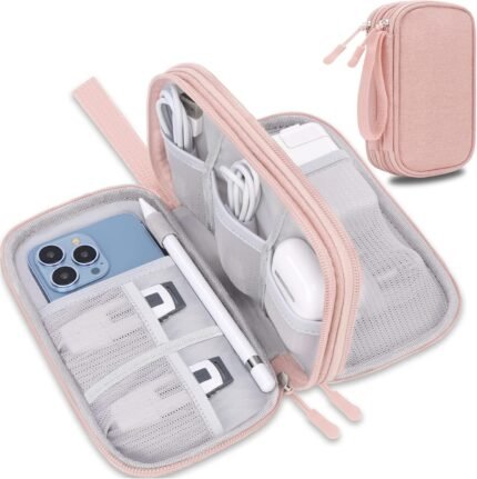 Lacdo Electronic Organizer, Travel Cable Organizer Bag Pouch Tech Electronic Accessories Carry Case Portable Double Layer Charger Case for Cable, Cord, Charger, Phone, Earphone, Power Bank, Light Pink