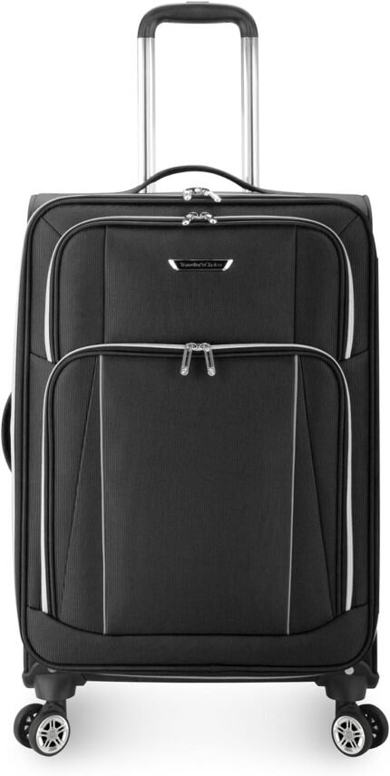 Traveler’s Choice Lares Softside Expandable Luggage with Spinner Wheels, Black, Checked 26-Inch