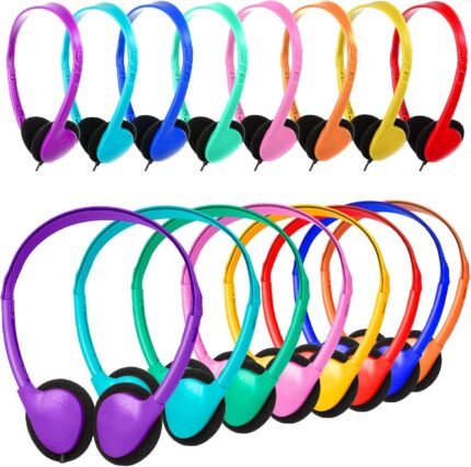 Classroom Headphones Bulk 24 Pack for Kids Children On Ear Comfy Swivel Earphones for Students School Library Online Learning Travel 3.5mm Jack Multi Color