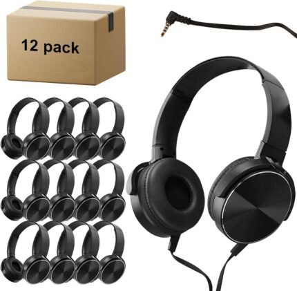 12 Pack Classroom Headphones Bulk,Student Comfortable Swivel Earphones for Library, School, Airplane, HQ Stereo Sound Headphones for Online Learning and Travel(009 Black Headphones)