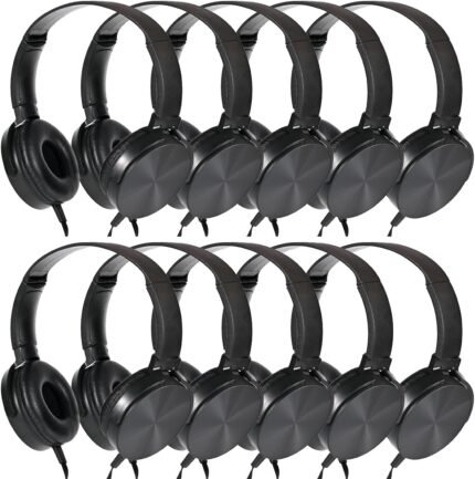 Classroom Headphones Bulk 10 Pack,Students On Ear Headsets,Comfy Swivel Earphones for Computer,School,Library,Airplane,for Online Learning and Travel,Premium Stereo Sound 3.5mm Jack (Black)