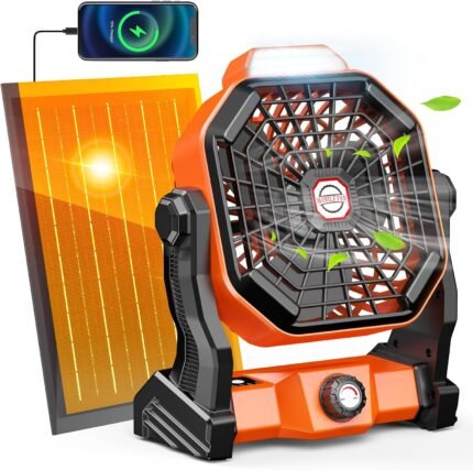 10800mAh Solar Powered Fan, 7W Solar Camping Fans & Led Lantern, 8-inch Rechargeable Fan with Solar Panel, Battery Operated Powered Outdoor Tent Fans for Camping Essentials Accessories